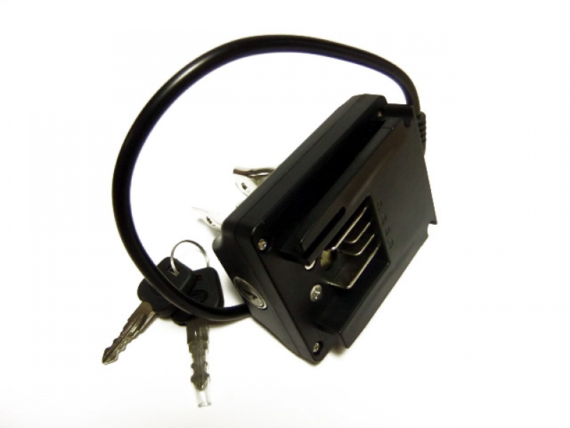 Abschließbare, universelle Sattelstütz-Halterung für Pedelec- bzw. Ebike Akkus mit 24V / 36V unterschiedlicher Größen, incl. 2 Schlüssel. Erlaubt auch sehr individuelle Montage-Lösungen (s. z.B. am TRimobil Trike).